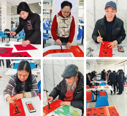 本次活动由嘉定区南苑中学集墨党员工作室牵头,来自中国书法家协会、上海书法家协会、嘉定书法家协会、四川东方张大千研究中心、上海市吴昌硕基金会缶丁庐吴超工作室的书法家们,现场为全所职工与学生书写春联600余副、福字近千张。活动现场暖意融融,职工们或驻足欣赏书法艺术,或挑选心仪的联句,在浓浓的墨香与欢声笑语中感受传统年俗文化的魅力。