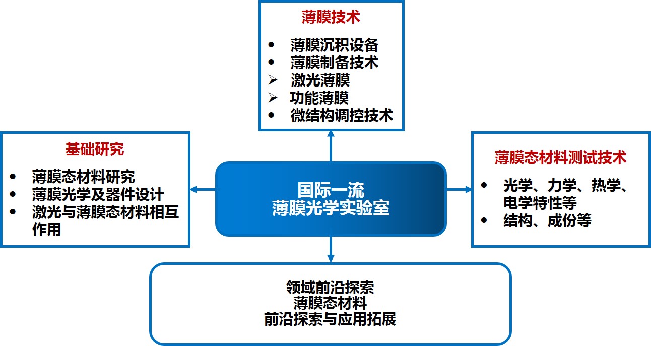 薄膜光学实验室的主要研究方向包括基础研究、薄膜技术和薄膜态材料测试技术等。