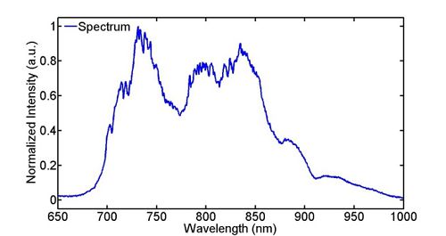 图2 输出光谱:光谱底宽覆盖650-1000nm