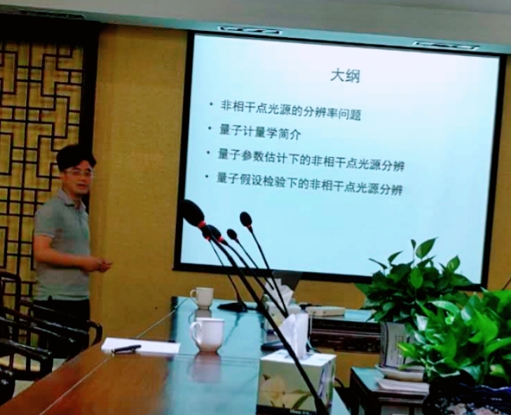 6月6日,杭州电子科技大学陆晓铭教授来我所访问交流,作了题为“量子估计和探测理论及其在成像中的应用”的学术报告。成像系统的分辨率的统计描述是量子成像的重要研究方向。报告中将成像问题转换为参数估计或者假设检验,运用量子计量学的工具,可以得到比瑞利标准更好的度量成像分辨率的方法。量子光学重点实验室30余位科研人员和研究生参加了本次报告,与会人员与陆晓铭教授进行了热烈和深入的讨论交流。