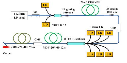 千瓦级掺镱-拉曼集成的光纤放大器结构示意图