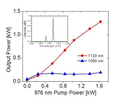 近期,中科院上海光机所空间激光信息技术研究中心冯衍研究员领衔的课题组,在高功率拉曼光纤激光器研究中取得重要进展。提出了一种镱-拉曼集成的光纤放大器结构,有效地解决了拉曼光纤激光器功率提升的主要技术瓶颈问题,在1120nm波长,首次获得580W的单横模线偏振拉曼光纤激光和1.3kW的近单模拉曼光纤激光输出。
