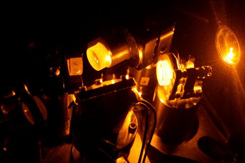 图2 谐振倍频产生589nm黄光照片