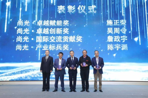 开幕式表彰了为我所发展做出贡献的校友和企业家,授予施正荣“尚光卓越赋能奖”、授予吴周令“尚光卓越创新奖”、授予詹政宇“尚光国际交流贡献奖”、授予陈宇渊“尚光产业标兵奖”,并由副所长李学春为获奖者颁奖。开幕式上,上海光机所和杭州光机所还分别与金融、投资机构及相关企业签署了战略合作协议。