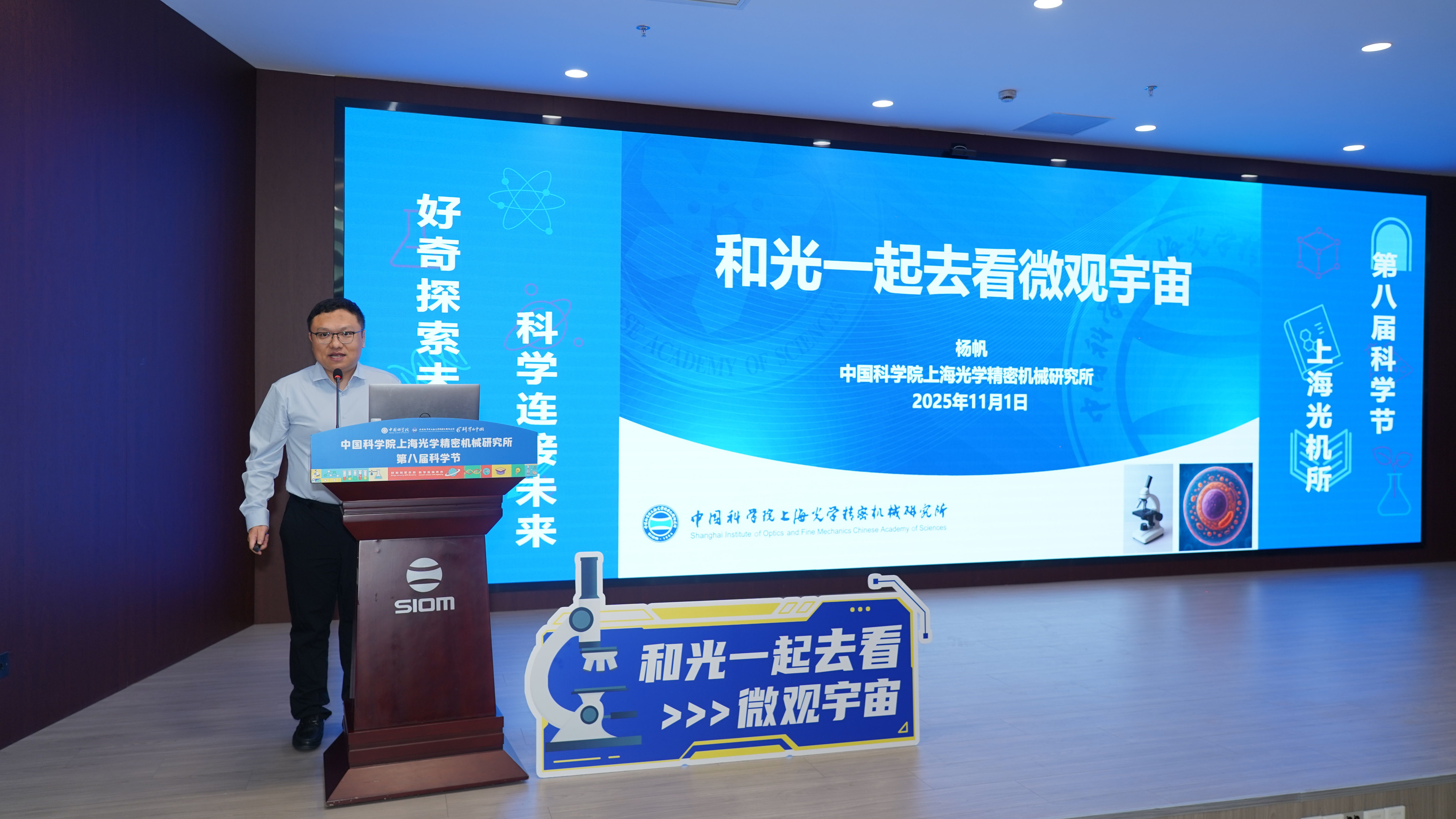 杨帆研究员作题为《和光一起去看微观宇宙》科普讲座。他介绍了显微镜的起源和应用,以及上海光机所在布里渊显微成像领域取得的技术优势。交流环节,同学们积极踊跃提问,杨帆老师通过举例的方式,生动地为同学们答疑解惑。