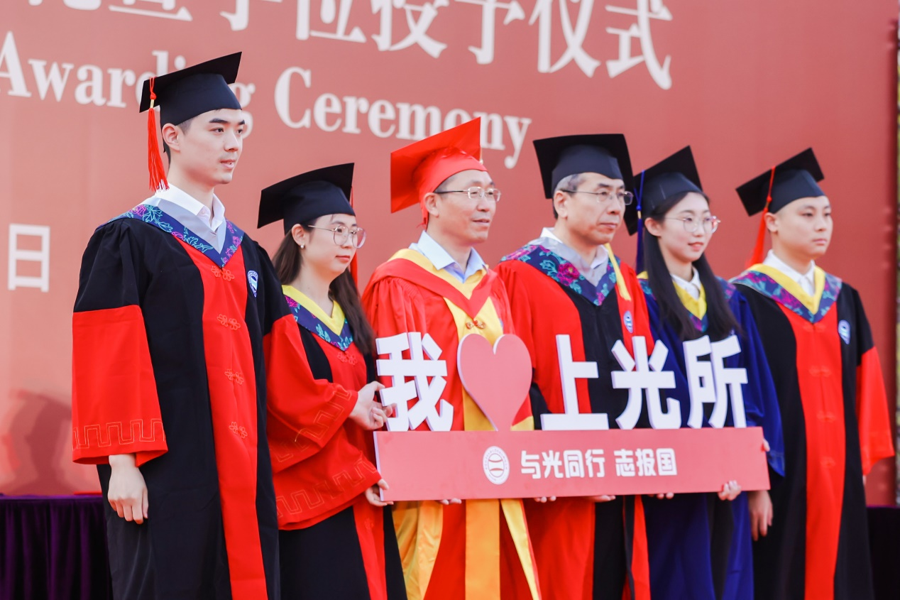 邵建达书记作毕业致辞,他代表全所职工向导师和家长们的莅临表示欢迎,并向全体毕业生致以最热烈的祝贺!祝贺同学们完成学业、顺利毕业。随后他向全体毕业生送上“三个祝愿”:一是祝愿毕业生未来一路顺风、生活如意;二是祝愿毕业生工作顺心,事业有成;三是祝愿毕业生身体健健康康、岁岁平安。还向全体毕业生提出三个“务必”的要求:在今后的学习工作中,务必将“上光”两字融入血液;务必将“感恩”两字融入师生情同学情;务必将“自律”作为人生远征的座右铭。希望全体毕业生都能在前行路上“宽谱”储能,最终“压缩”达峰!成为那颗带有上光标记的璀璨之星!