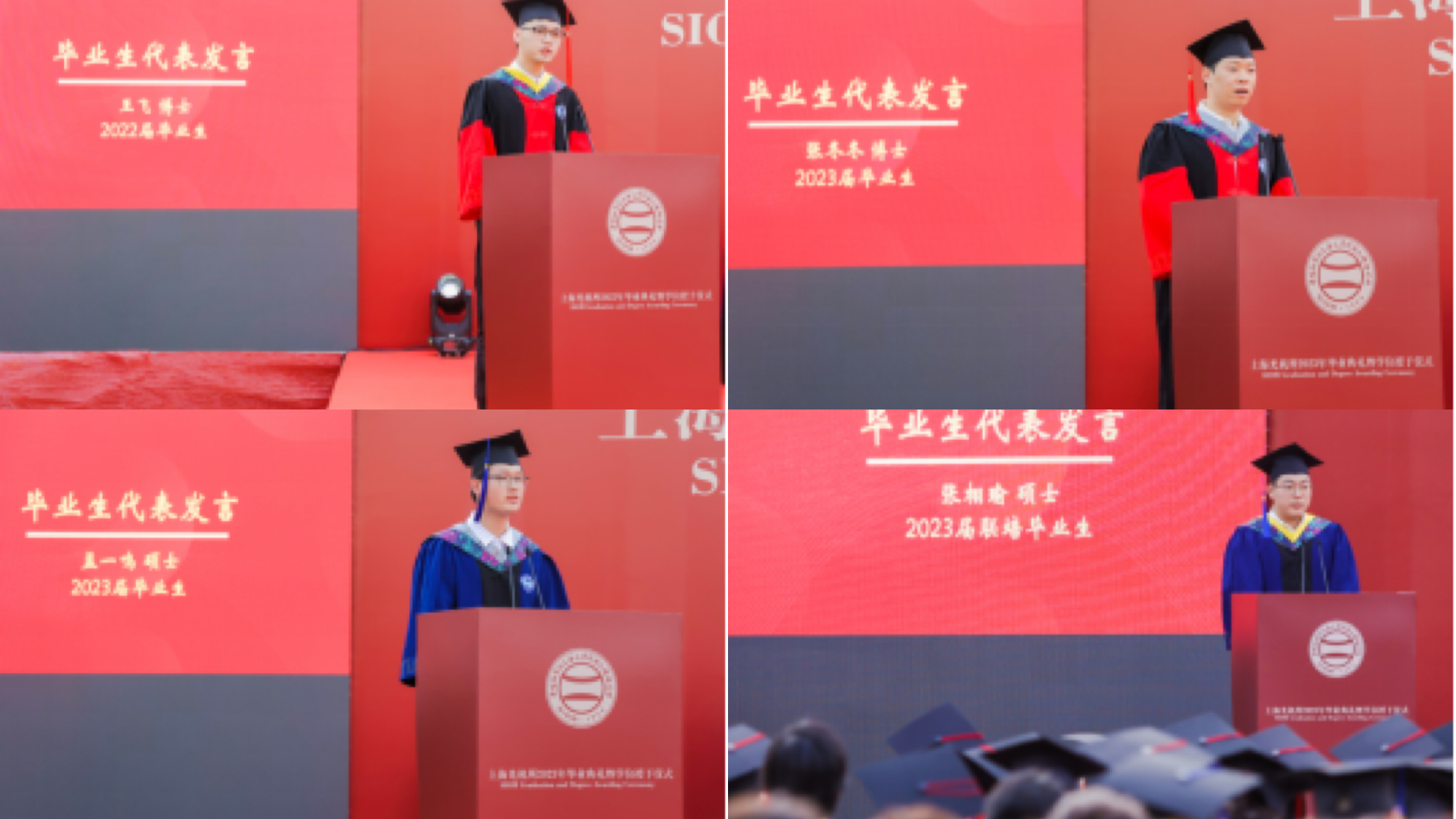 2022届毕业生代表王飞、2023届博士生代表张冬冬、2023届硕士生代表孟一鸣以及2023届联培硕士生代表张栩瑜同学分别上台发言,表达了对上光所良好科研条件和浓厚科研氛围的留恋,对导师们谆谆教诲的衷心感激,还有对同学朋友以及师兄师姐们的不舍及祝愿。