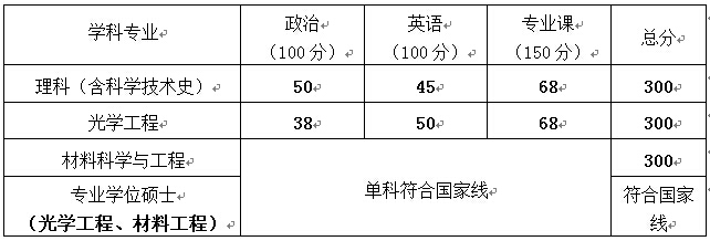 现将中科院上海光机所2016年硕士研究生招生复试分数线公布如下: