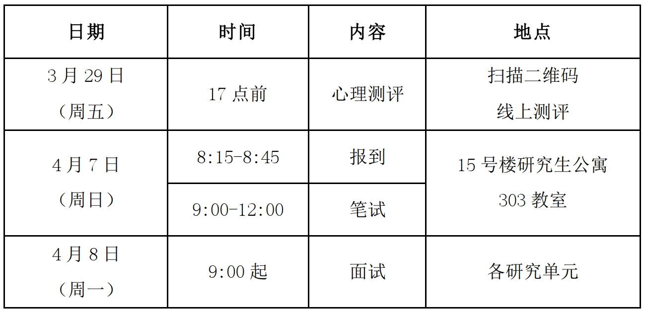 我所2024年秋季博士研究生“申请-考核”制考试时间定于2024年4月7日-8日,具体安排如下: