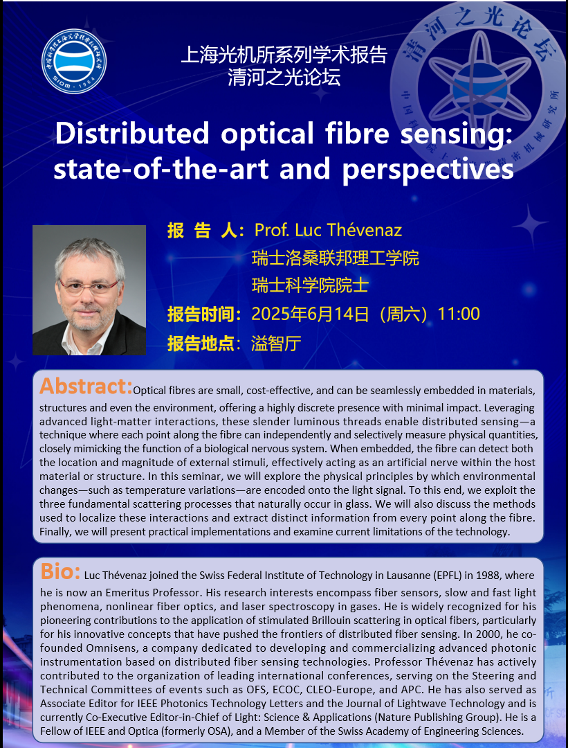 Luc Thévenaz joined the Swiss Federal Institute of Technology in Lausanne (EPFL) in 1988, where he is now an Emeritus Professor. His research interests encompass fiber sensors, slow and fast light phenomena, nonlinear fiber optics, and laser spectroscopy in gases. He is widely recognized for his pioneering contributions to the application of stimulated Brillouin scattering in optical fibers, particularly for his innovative concepts that have pushed the frontiers of distributed fiber sensing. In 2000, he co-founded Omnisens, a company dedicated to developing and commercializing advanced photonic instrumentation based on distributed fiber sensing technologies. Professor Thévenaz has actively contributed to the organization of leading international conferences, serving on the Steering and Technical Committees of events such as OFS, ECOC, CLEO-Europe, and APC. He has also served as Associate Editor for IEEE Photonics Technology Letters and the Journal of Lightwave Technology and is currently Co-Executive Editor-in-Chief of Light: Science & Applications (Nature Publishing Group). He is a Fellow of IEEE and Optica (formerly OSA), and a Member of the Swiss Academy of Engineering Sciences. |