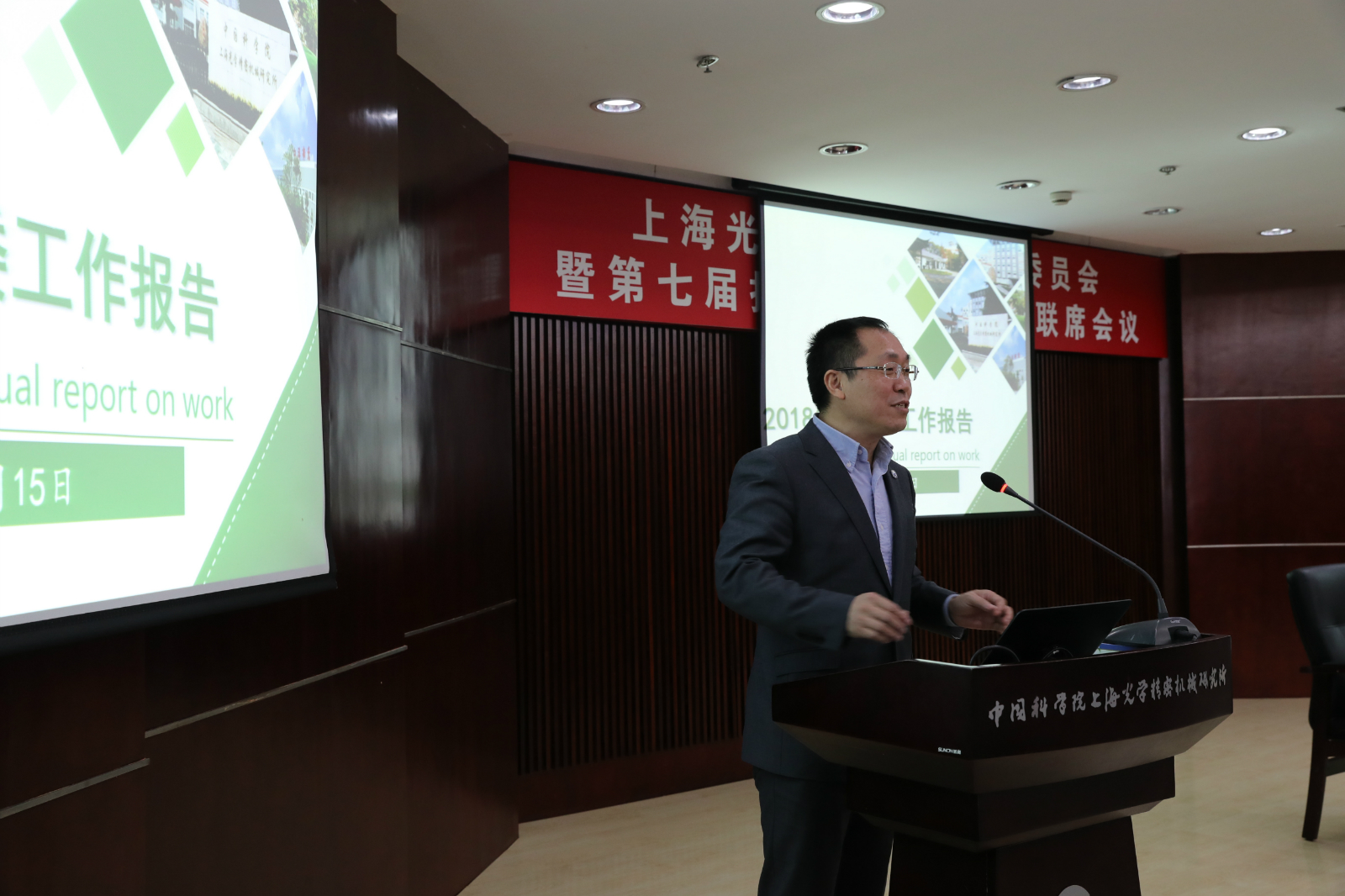 会上,所长李儒新院士做了上海光机所2018年度领导班子工作总结。报告全面介绍了2018年度全所科研工作进展及2019年度的工作思路和重点举措。一年以来,上海光机所获批启动筹建“超强激光科学卓越创新中心”、全所到位科研经费再创历史新高,以国家科技重大专项为主的各项科研任务取得了一系列重要进展,科技创新成果得到党中央和国家领导人的充分肯定。李儒新代表所领导班子感谢全所科研人员和干部职工的并肩奋斗,并号召大家站在新的历史起点上,秉承“上光精神”,不忘初心、牢记使命,脚踏实地、奋勇前进,对标中国科学院“四个率先”目标,进一步增强科技创新的紧迫感,为上海建设具有全球影响力科技创新中心、中国建设科技强国与创新型国家做出应有的贡献。