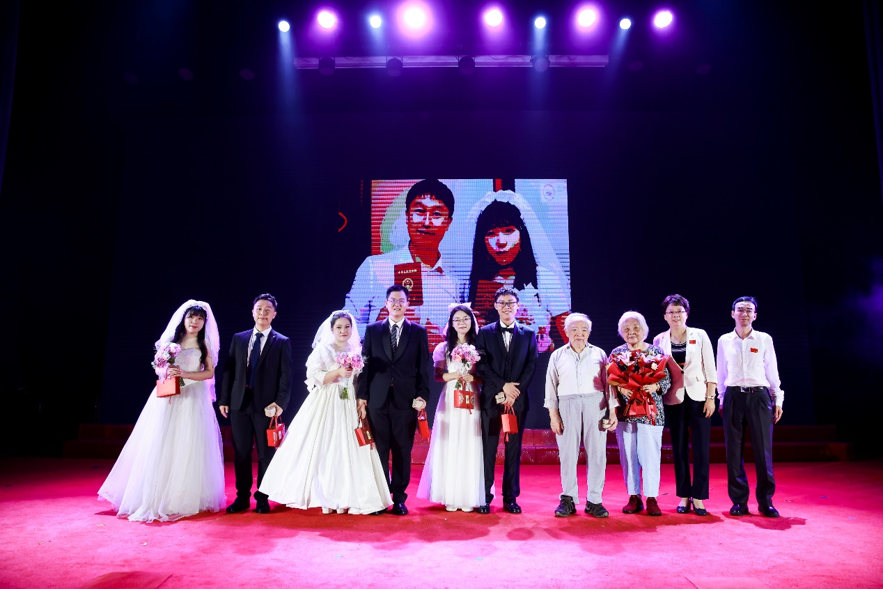 9月30日,在喜迎新中国成立75周年的喜庆氛围中,第一届上光集体婚礼,在中国科学院上海光机所庆祝新中国成立75周年和中国科学院建院75周年群众活动中温馨举办。2024年登记结婚的三对新人一同走上舞台,所领导和全所职工、研究生代表近600人,一起见证了这场“爱与科学”相遇的浪漫婚礼。