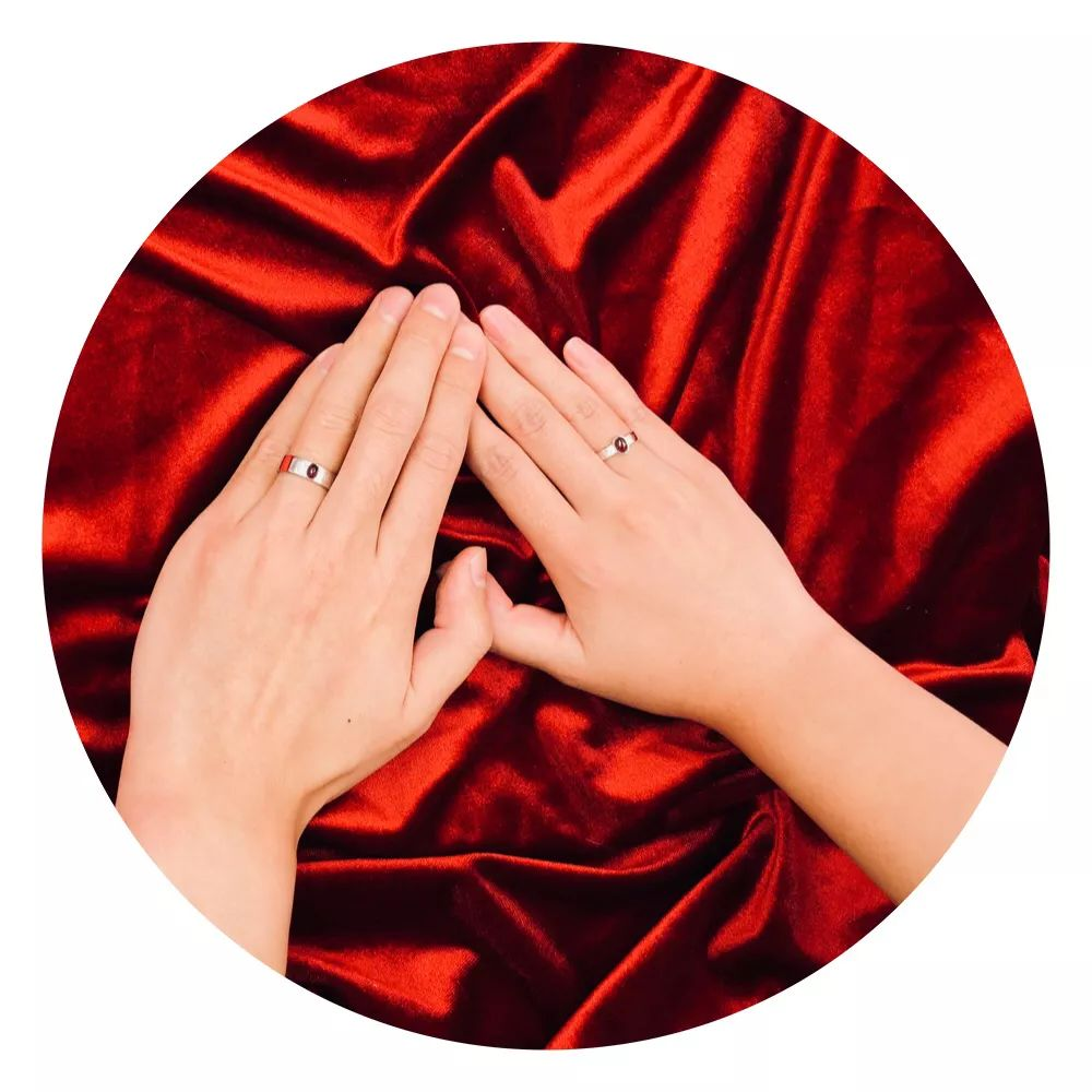 上海光机所研制成功国际最大口径的钛宝石。在超强超短激光装置中,钛宝石晶体的主要用途是用来进行激光能量的放大。经过它放大的激光,是人类已知的最亮光源。将科研余料巧妙运用于对戒的设计中,发挥钛宝石二次价值,让科学与艺术交相辉映。