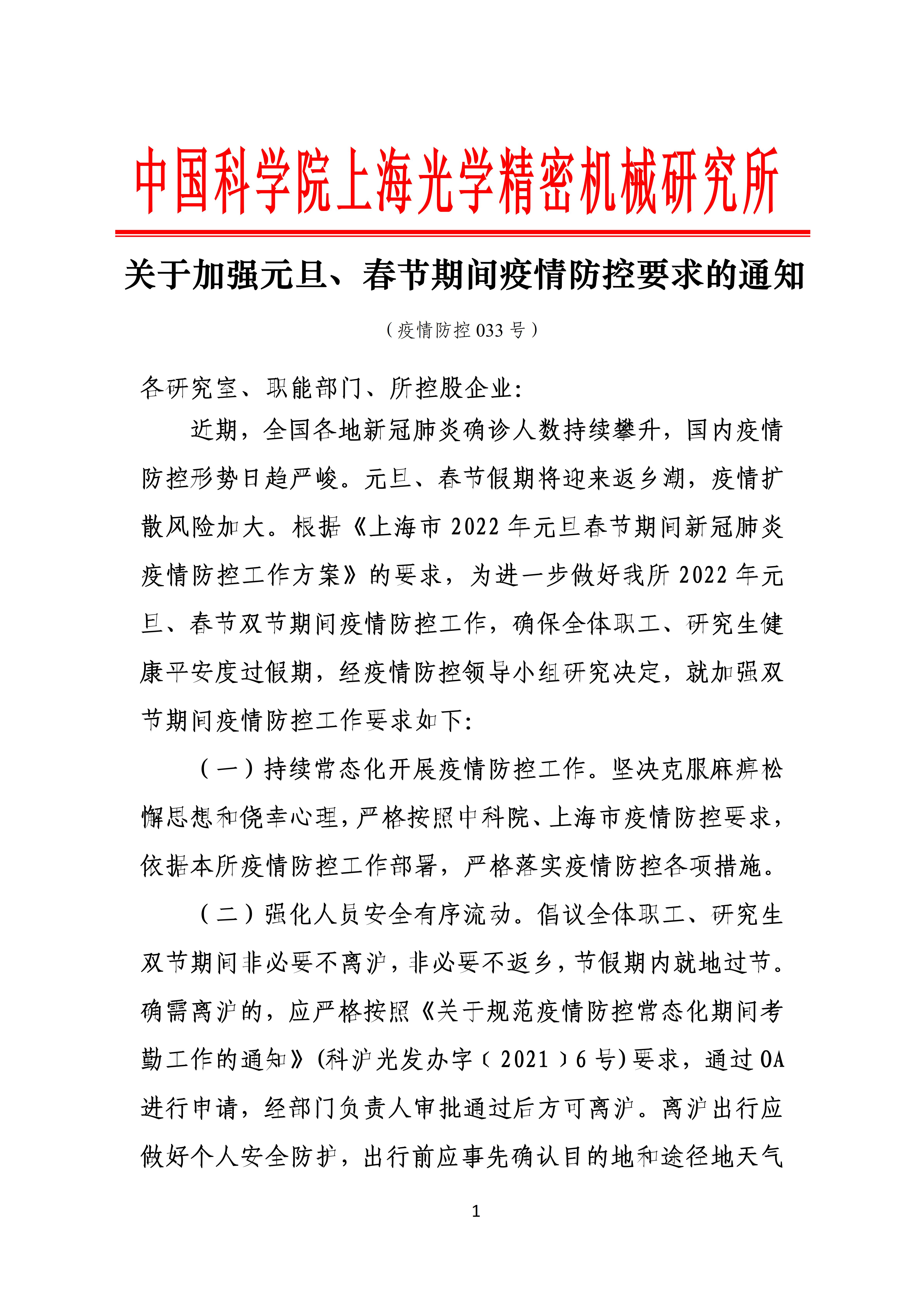 关于加强元旦、春节期间疫情防控要求的通知(疫情防控033号)