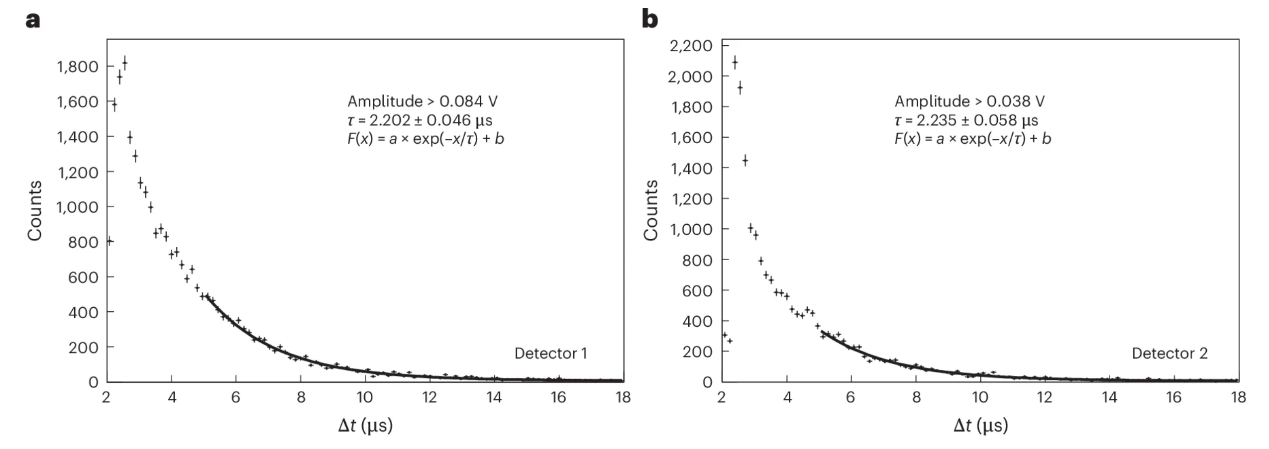 图2 两组探测器的缪子寿命谱测量结果