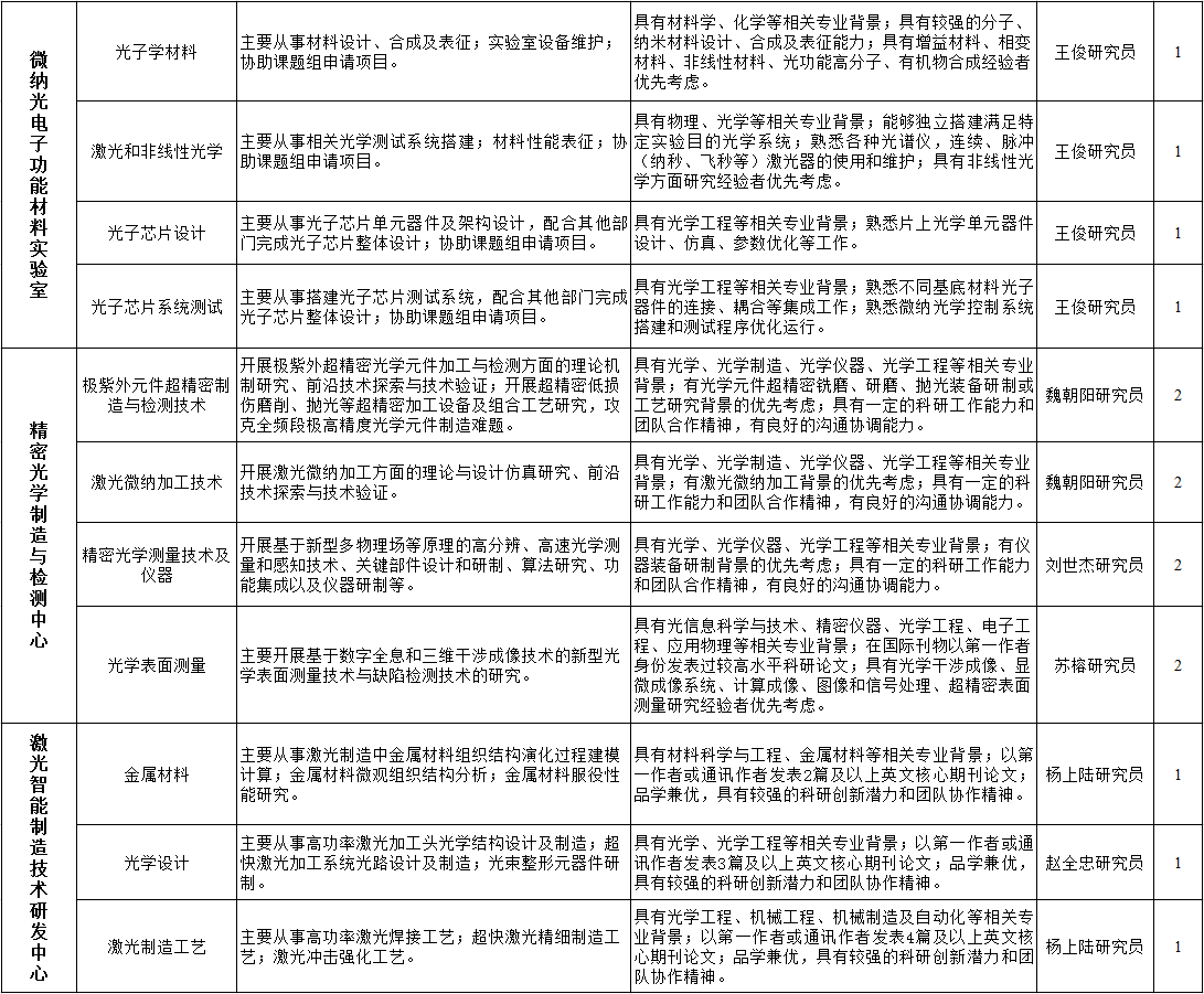 申请人请将个人简历、近3年的3项代表性科研成果发送至邮箱zhaopin@siom.ac.cn,邮件主题为“研究室-研究方向-姓名”。