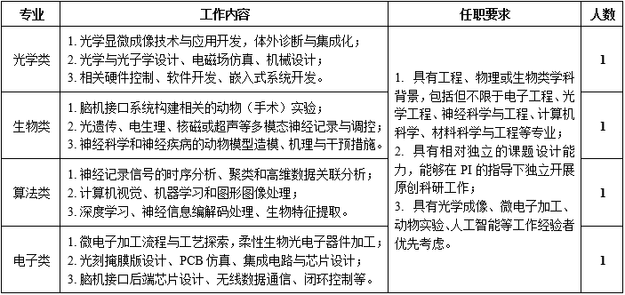 (1)大学本科及以上学历,具有工程、物理、生物、材料等相关专业背景;
