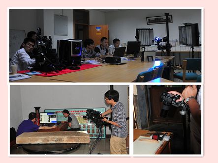 在第一阶段的基础上,联合课题组于6月19日至26日,赴河南省文物考古研究院新郑工作站和河南省文物考古研究院郑州本部,对库房中不宜出库的多种更珍贵的文物进行综合原位无损分析研究,所分析的文物时代自西周至唐代,包括有大尺寸画像石砖、青铜礼器组合、仿青铜的陶器礼器组合、玉器、漆陶器、唐青花、墨书甲骨以及曹操墓出土的珍贵玉器等文物。