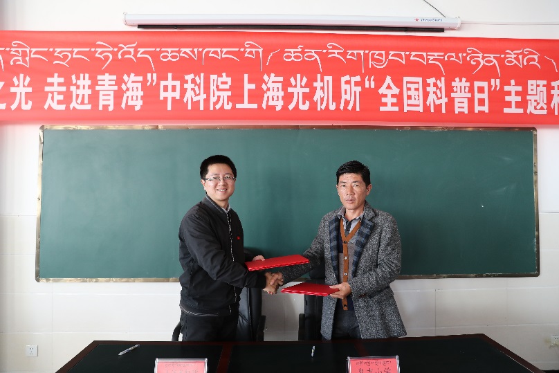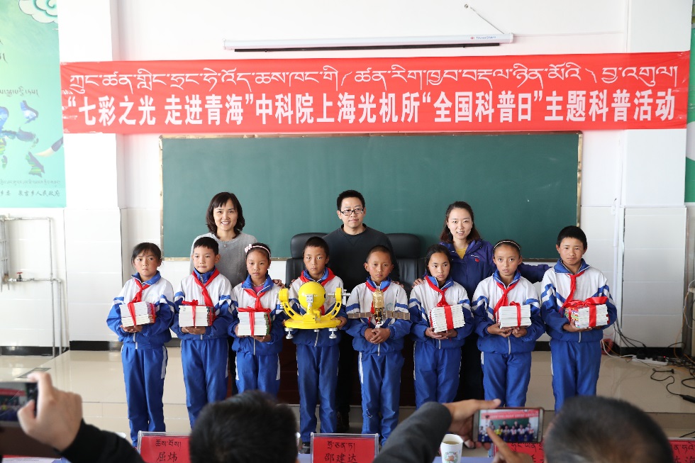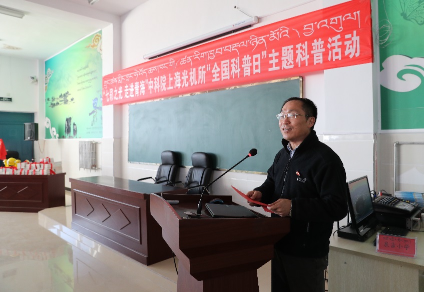 9月18日-21日,2017年“全国科普日”之际,中科院上海光机所“七彩之光 走进青海”主题科普活动在青海省海北州泉吉乡民族寄宿制完全小学(泉吉小学)成功举行。上海光机所科普志愿团队10余人在泉吉小学开展为期近一周的科普志愿服务活动。所党委书记邵建达,青海省刚察县科技局黄延寿局长、教育局陈海蓉副局长、泉吉乡人民政府副乡长仁增多杰等出席了9月20日的“七彩之光 走进青海”主会场科普活动。