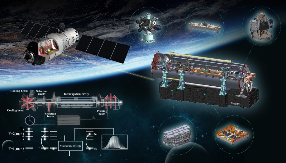 冷原子钟是把原子某两个能级之间的跃迁信号作为参考频率输出信号的高精度时钟,同时利用激光使原子温度降至绝对零度附近,使原子能级跃迁频率受到更小的外界干扰,从而实现更高精度。在微重力环境下运行高精度原子钟则具有更重要意义,不仅可以对基本物理原理开展验证实验,也可发展更高精度的导航定位系统。
