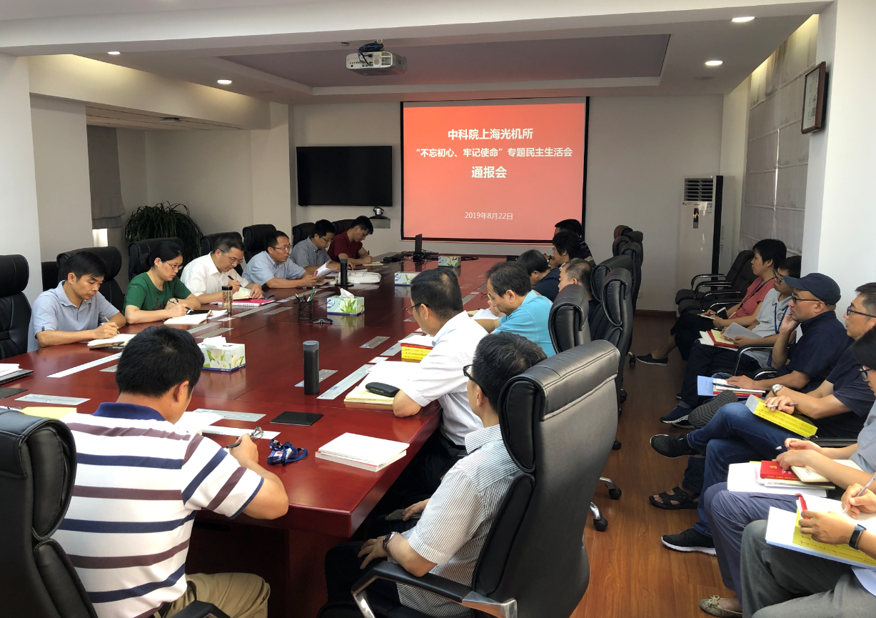 8月22日,上海光机所党委在一号楼512会议室召开“不忘初心、牢记使命”专题民主生活会通报会。所领导、党委委员、纪委委员、机关部门正职、党支部书记参加了本次会议。会议由党委书记邵建达主持。