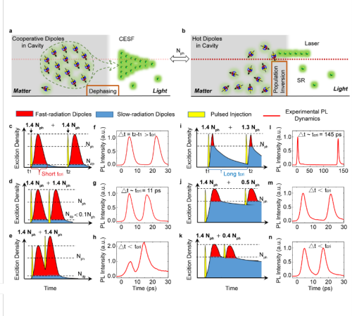 图2 腔增强的超辐射不同于传统激光在阈值以下时载流子快速耗散的特性