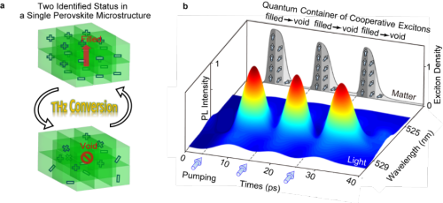 该项研究中,提出了非平衡协同激子钙钛矿核的超快控制方案,并在一个长程有序,排列紧密的钙钛矿超晶格微腔的基础上进行了实验验证。这种多体量子器件不受经典粒子反转条件的限制,具有独特的辐射能力,可调带宽高达0.1 THz。除了在钙钛矿系统中进行集体操作外,还开发了一种新的微腔结构——“量子点超晶格微腔”,可应用于各种材料设计具有远程量子特性和高光学可控性的微型光电子器件。
