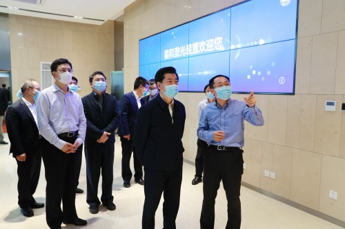 5月8日,上海市委副书记廖国勋一行赴上海超强超短激光实验装置调研,并主持召开科技人才工作座谈会。市人大常委会副主任肖贵玉、市政协副主席李逸平等共同参加调研及座谈会。上海光机所所长邵建达,党委书记、副所长陈卫标,副所长冷雨欣等参加接待。