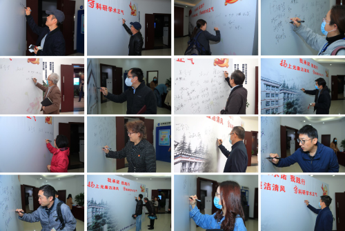 会议开始前,参会人员纷纷在主题为“扬上光廉洁清风,守科研学术正气”的承诺墙上签名,庄重地许下自己的承诺。