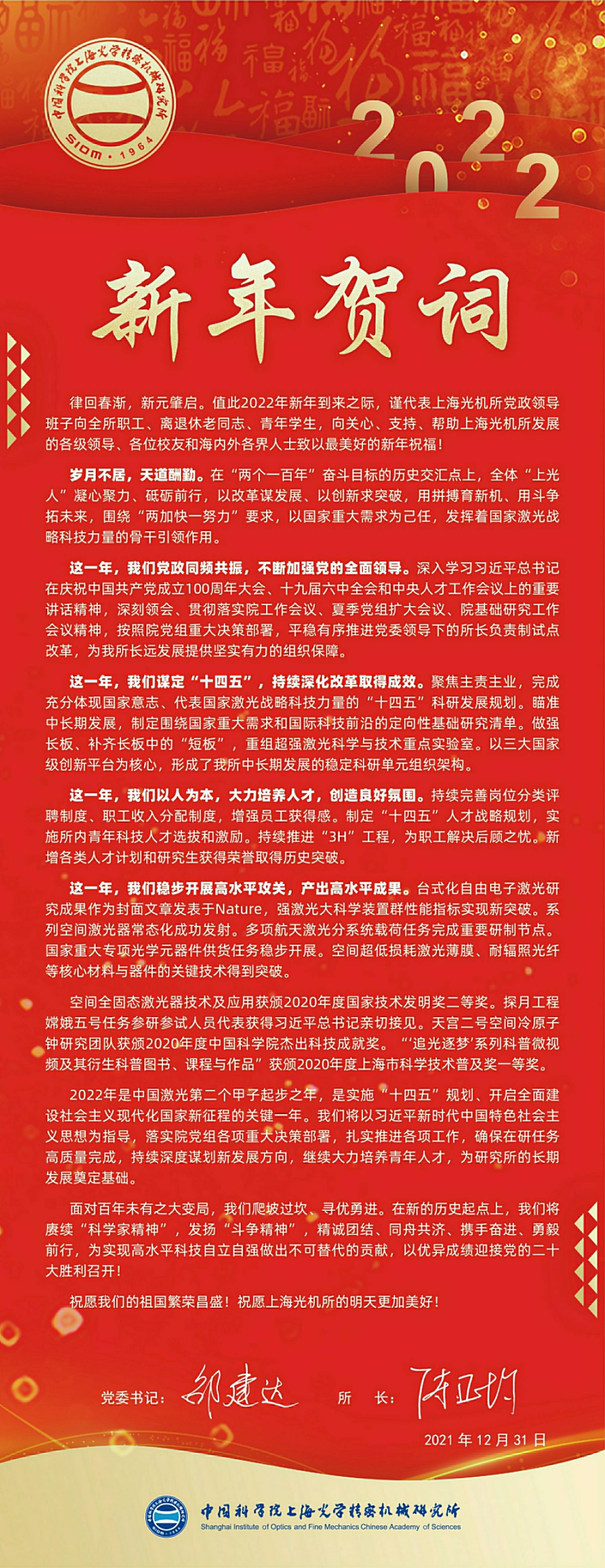 上海光机所2022年新年贺词