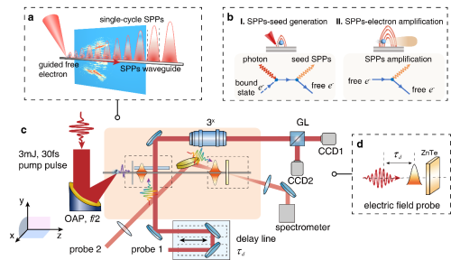 近日,永乐汇强场激光物理国家重点实验室李儒新院士和田野研究员团队在小型化自由电子相干光源研究领域取得突破性进展。研究团队实验探索飞秒激光驱动的超短电子脉冲泵浦表面等离极化激元(surface plasmon polariton,SPP)的动力学过程,通过对自由电子脉冲泵浦SPP相干放大的动态过程观测,阐述了自由电子与SPP作用过程中的受激放大机理。该项研究采用超快光学技术探测了自由电子受激辐射放大的全过程,研究成果指明了采用自由电子泵浦SPP实现其相干放大的全新途径,对于发展小型化/集成化的相干光源具有重要意义。相关研究成果于2022年11月3日发表于《自然》(Nature)杂志。
