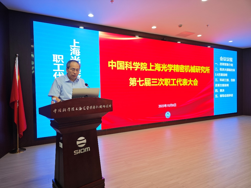 会上,代表们分别听取了综合管理部部长薛慧彬和科技管理部部长周田华对《上海光机所职能与支撑部门调整方案》《上海光机所科研大部(三部、四部)组建方案》的介绍。经现场无记名投票,大会顺利通过两项改革举措。