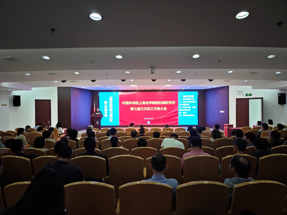 10月8日,上海光机所第七届三次职工代表大会在羲和厅召开。全所共有71名职工代表和100余名特邀代表参加会议。本次会议主要审议了“科研单元三部、四部组建方案”和“机关大部制改革2.0的调整方案”。会议由工会主席邵宇川主持。