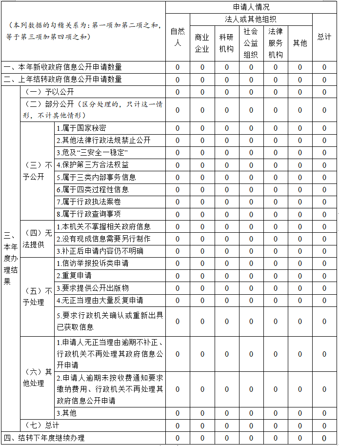 2022年1月1日至12月31日,我所继续履行政府信息公开申请受理义务,不断完善规范依申请公开的受理、审查、处理、答复程序。我所未收到政府信息公开申请。